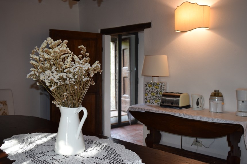 Francesca’s décor throughout the place is spectacularly feminine without being over-the-top frou frou.  Every space offers some delight.  The rustic essence of the Italian countryside compliments crisp linens and fresh white walls, juxtaposing ancient stones that were placed by the hands of people who lived a very long time ago.  Somehow Francesca has maintained the history of this incredible place, while bringing to life luxurious comforts, and modern-day conveniences like wifi.