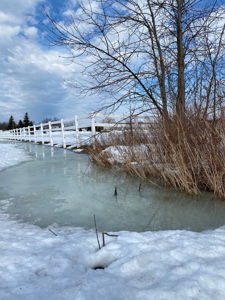 Out for a walk the other day I saw a ditch. A ditch? You ask laughingly. She’s going to write about a ditch? Yes, a mere ditch that made me stop and take this picture.