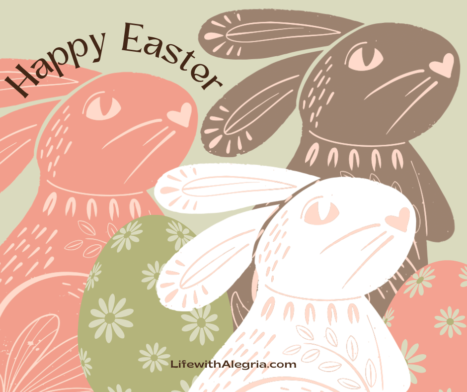 Beautiful Easter wishes, Alegria! Happy Easter to you! I’m sitting next to our collection of Easter egg finds and our bellies will be full of chocolate for sure!